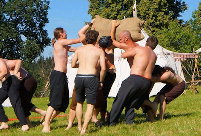 Bewegungsspiel/Kampfspiel für zwei Gruppen mit jeweils etwa 5 Spielern. Je nach