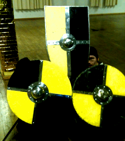 Ein allgemein bekannter Schildwall, der gegen Speerangriffe und Pfeile effizient